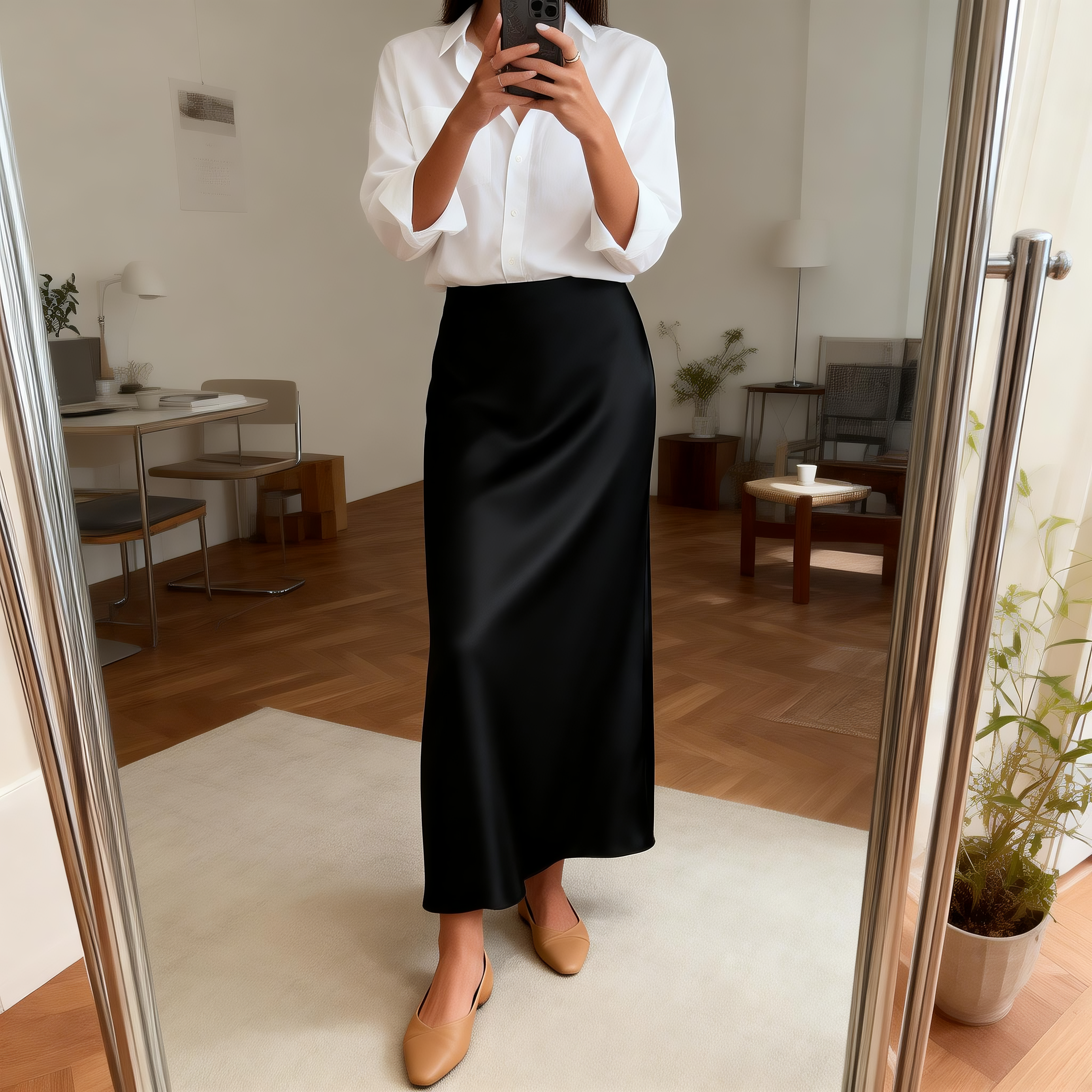 I was looking for a versatile satin skirt that works for the office and weekends, and this one is exactly it! The A-line silhouette is so elegant, the fabric is high-quality, and it’s so easy to dress up or down. Outoshe’s sizing is perfect. Highly recommend!