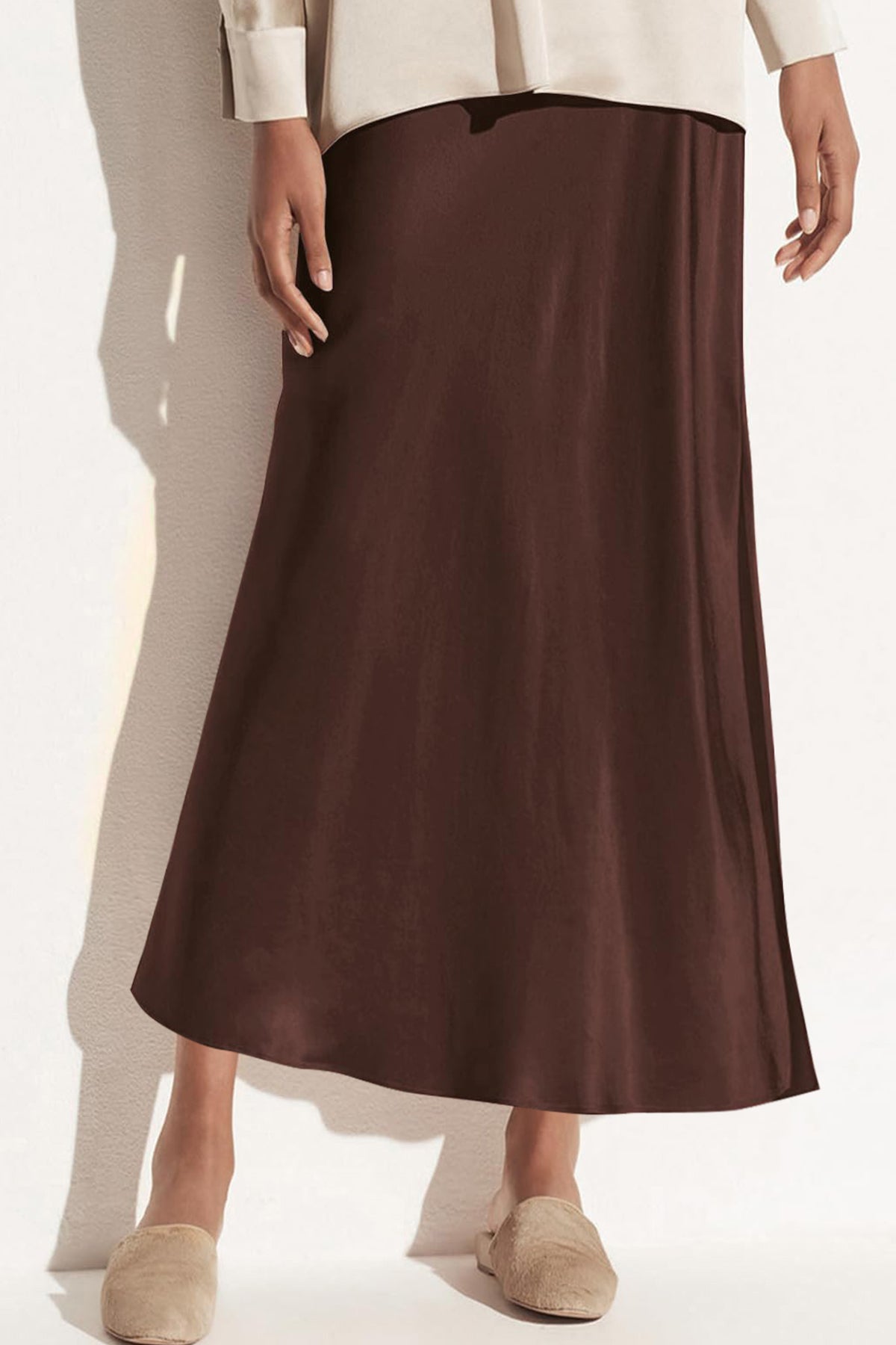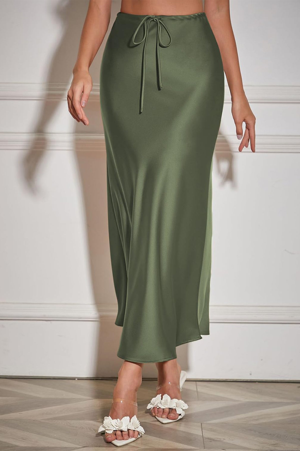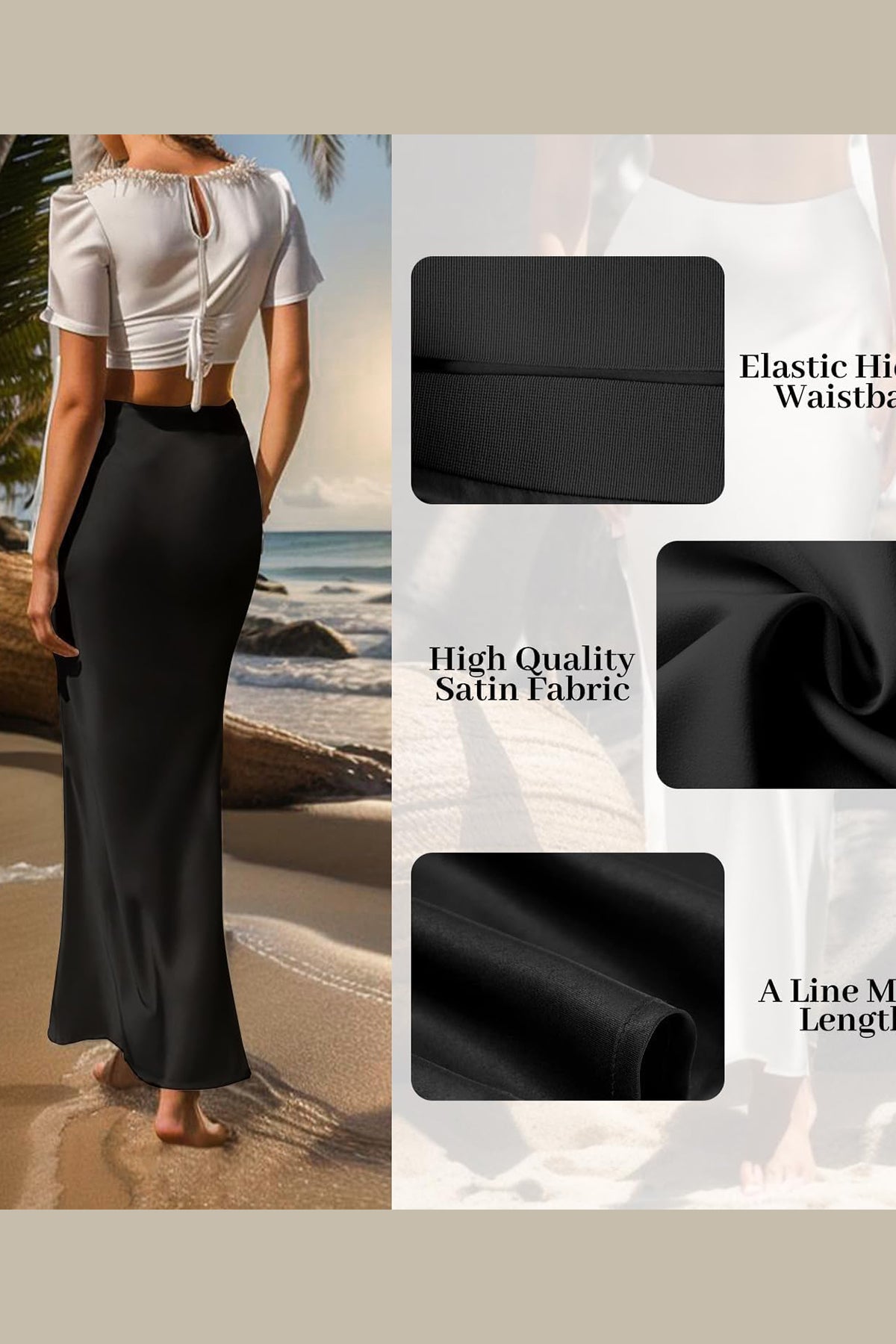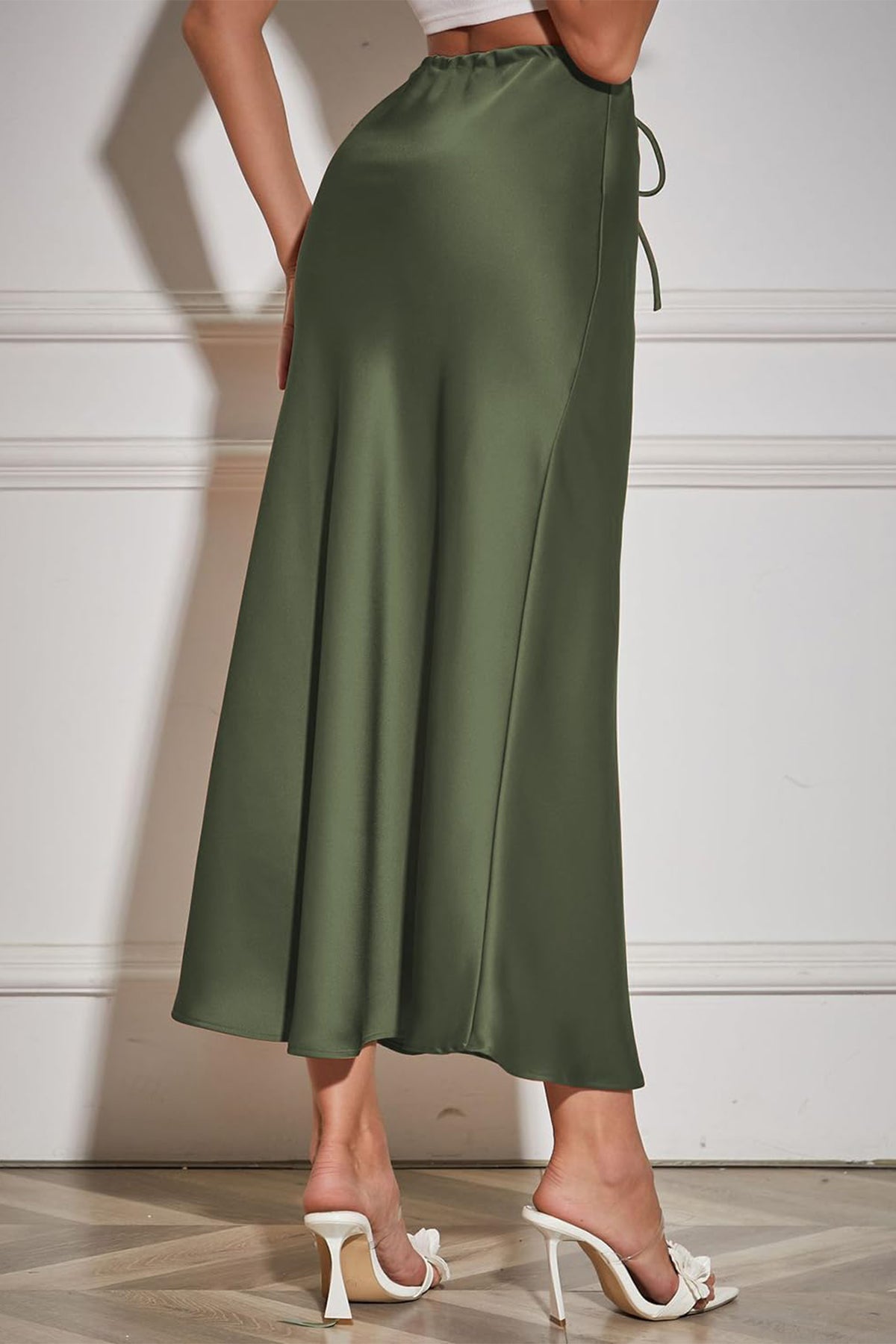 9 reviewsThis satin maxi skirt is chef’s kiss! The fabric is so luxe and flows perfectly, the high waist is so flattering, and it’s the perfect length for both vacation and everyday wear. I’ve gotten so many compliments already, and the quality is way better than I expected. Will 100% be buying more from Outoshe!