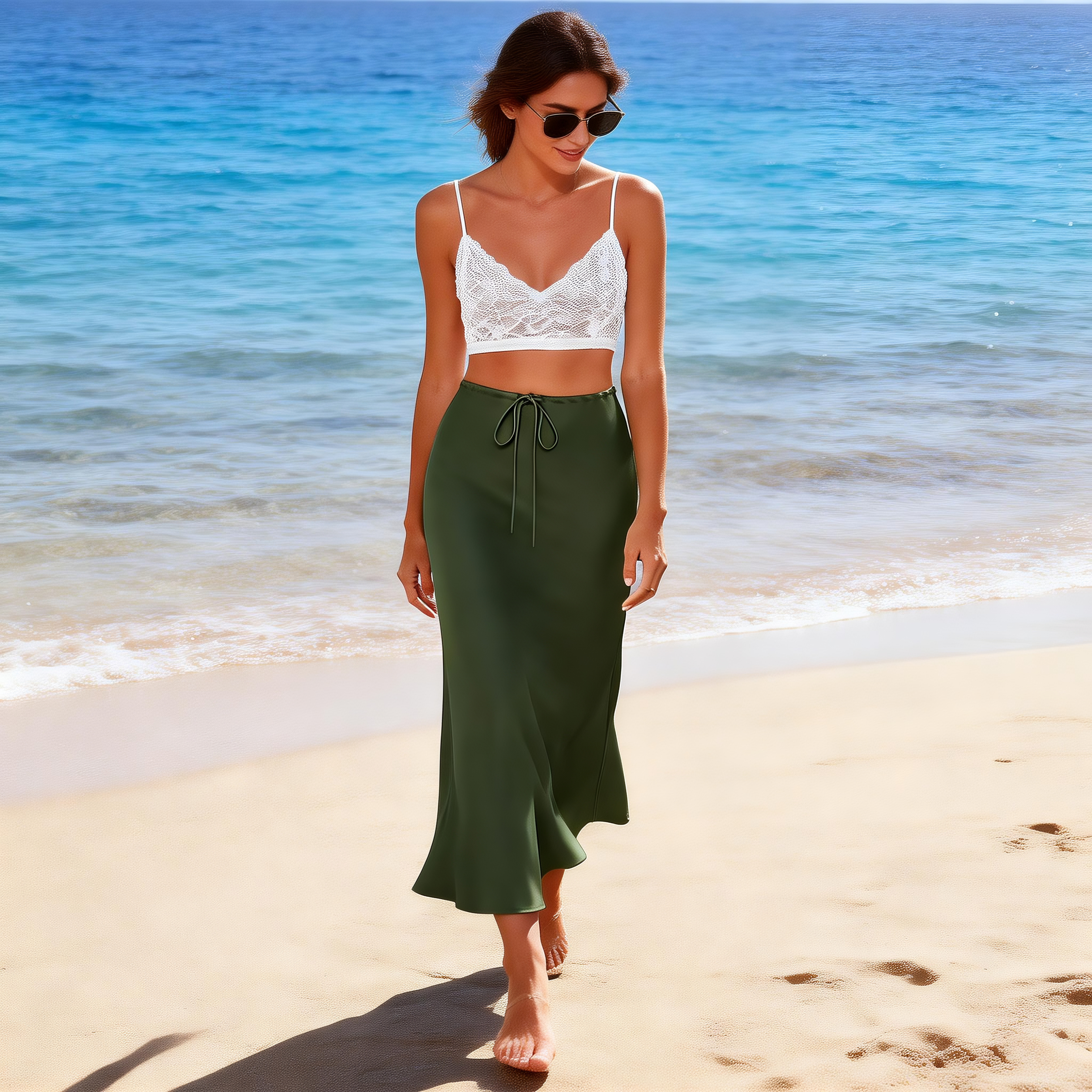 Packed this skirt for my trip to Greece and it was my go-to outfit every single day! It’s lightweight, doesn’t wrinkle, and looks amazing with everything from crop tops to blouses. The fit is true to size, and the satin just glows in the sun. Obsessed with this brand!